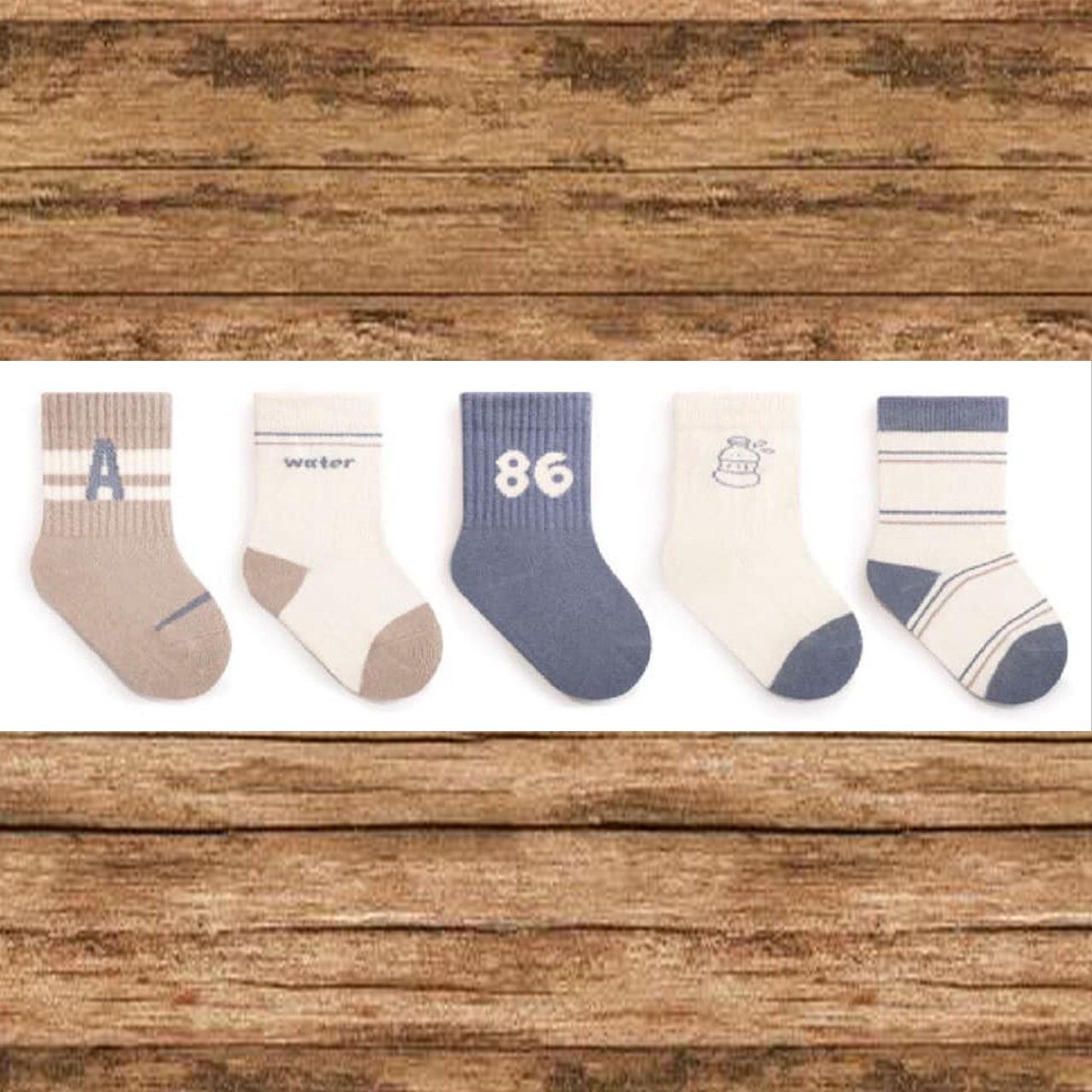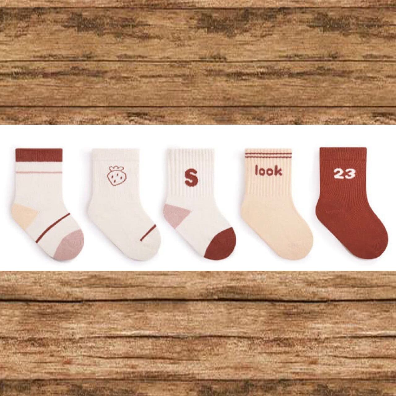 SOLD OUTおしゃれなキッズソックス5足セット、様々なコーディネートに合わせやすいユニセックスソックスで、男の子、女の子問わずにご使用いただけます。